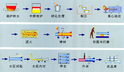 >> 潮砂型离心球墨铸铁管生产工艺流程图